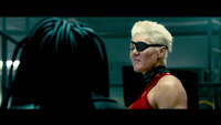 Другой, очень колоритный персонаж в комиксе это Мать-Россия. По сюжету комикса Крис нанимает бывшую телохранительницу Владимира Путина, однако в фильме ей придумали новую биографию. (Или это проделки российского дубляжа? Надо будет в оригинале посмотреть.) А заодно придали внешность бодибилдерши Ольги Куркулиной. Решение, мягко говоря, странное. Актерское дарование госпожи Куркулиной можно сравнить разве что с Арнольдом нашим "Терминатором" Шварценнеггером. То есть, ровно такой же самодвижущийся шкаф, только женского полу. Чтобы шкаф на экране не выглядел шкафом, надо уметь его снимать. Судя по всему, никто из съемочный команды Kick-Ass 2 не имел опыта работы с Арни, так что Куркулину показать с наиболее выгодных ракурсов не смогли. (Крупный план накачанной задницы в красных труселях не в счет.) Особенно это заметно, когда Мать-Россия должна просто присутствовать в кадре. Типичная мебель – как поставили, так и стоит.