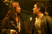 Уиллу Тернеру Джек Воробей так и не дал выйти на первый план, поэтому Уилл, слегка побегав за Воробьем в первой половине фильма, так и остался где-то на задах шаркать ножкой и шваркать шпагой. Элизабет достойно выглядела только в самом начале, а потом, когда ее героиня из хотя и лихой, но девицы, злодейски лишенной первой брачной ночи, вдруг превратилась в самую настоящую пиратку с весьма сомнительными моральными качествами, ее персонаж стал на редкость невнятным. Кира Найтли играет Элизабет очень неровно и, в общем, не понравилась.