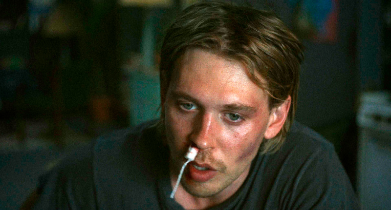 Остин Батлер отлично смотрится в роли Хэнка. Немногословный, постоянно переживающий юношескую травму, мало чем интересующийся кроме любимой команды и звонков мамочке, потихоньку спивающийся и желающий только одного: чтобы его оставили в покое. Но когда он совершенно неожиданно оказывается вовлеченным в весь этот дурдом, то ему волей-неволей приходится взять в руки биту и сделать решительный удар. Оказалось, что ему все-таки дорога эта жизнь, и он за нее будет отчаянно цепляться.