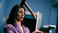 Трупов в фильме хватает, но все они, как я уже сказал, умирают слегка глупо и буффонадно. И даже топор в башку, который получила героиня Мими Роджерс, выглядел очень неестественно и театрально - явно чтобы подчеркнуть определенную условность происходящего.