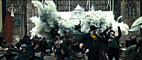 В результате в общем и целом фильм смотрится неплохо - я бы даже сказал, что лучше, чем первый. Эдакая почти пародийная боевитая фантасмагория, где персонажи друг друга почему-то называют именами из Конан Дойля. Холмс старательно подкалывает Ватсона, Ватсон пытается жениться в обстановке непрекращающейся травли, Майкрофт вовсю снобирует, Мориарти делает вид, что ему очень нужно управлять этим миром, негодяи негодяйствуют, стреляют и пытаются биться на кулачках. В общем, жизнь идет. После просмотра в памяти остаются некоторые действительно смешные эпизоды (их там, если честно, очень даже немного), а все остальное смывается почти мгновенно - ибо чистый и незамутненный кинематографический фастфуд. Но приличного уровня, с хорошей боевиковой составляющей и эффектными декорациями. Вероятно, именно этим объясняется столь высокий рейтинг на IMDB - аж 7,7. Я бы поставил где-нибудь 6,4.