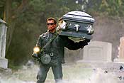 Тем не менее, даже при таком довольно своеобразном кастинге, фильм получился приличный. В смысле, не отстойный. Продолжения всегда хуже оригинала, Мостоу - вовсе не Кэмерон, так что в данном случае все даже лучше, чем ожидалось. Посмотреть третьего "Терминатора" на большом экране (понятно, что только на нем) вполне можно, и при этом даже не обязательно глушить в себе предполагаемую горечь разочарования несколькими сотнями граммов чего-нибудь горячительного. Там даже юморок кое-какой есть. Правда, в большинстве своем - это прилежное повторение старого, причем из разных фильмов со Шварцем, однако находка с очками - вполне самостоятельная и очень прикольная. Зал просто рыдал.