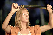 Как известно, похоронный списочек восставшей после небольшого выстрела в лицо Невесты (Ума Турман) состоял из пяти имен. В первом фильме Невеста разобралась с двумя своими закадычными подружками из этого списка: афроамериканкой Вернитой Грин, чья малолетняя дочка, присутствующая при выяснении отношений, дает фанатам надежду на продолжение банкета, и японкой О-Рен Ишией, у которой при встрече с Невестой от радости просто снесло крышу, хотя Невесте для достижения подобного результата пришлось пообрубать конечности целой толпе бесноватых Мистеров Иксов...