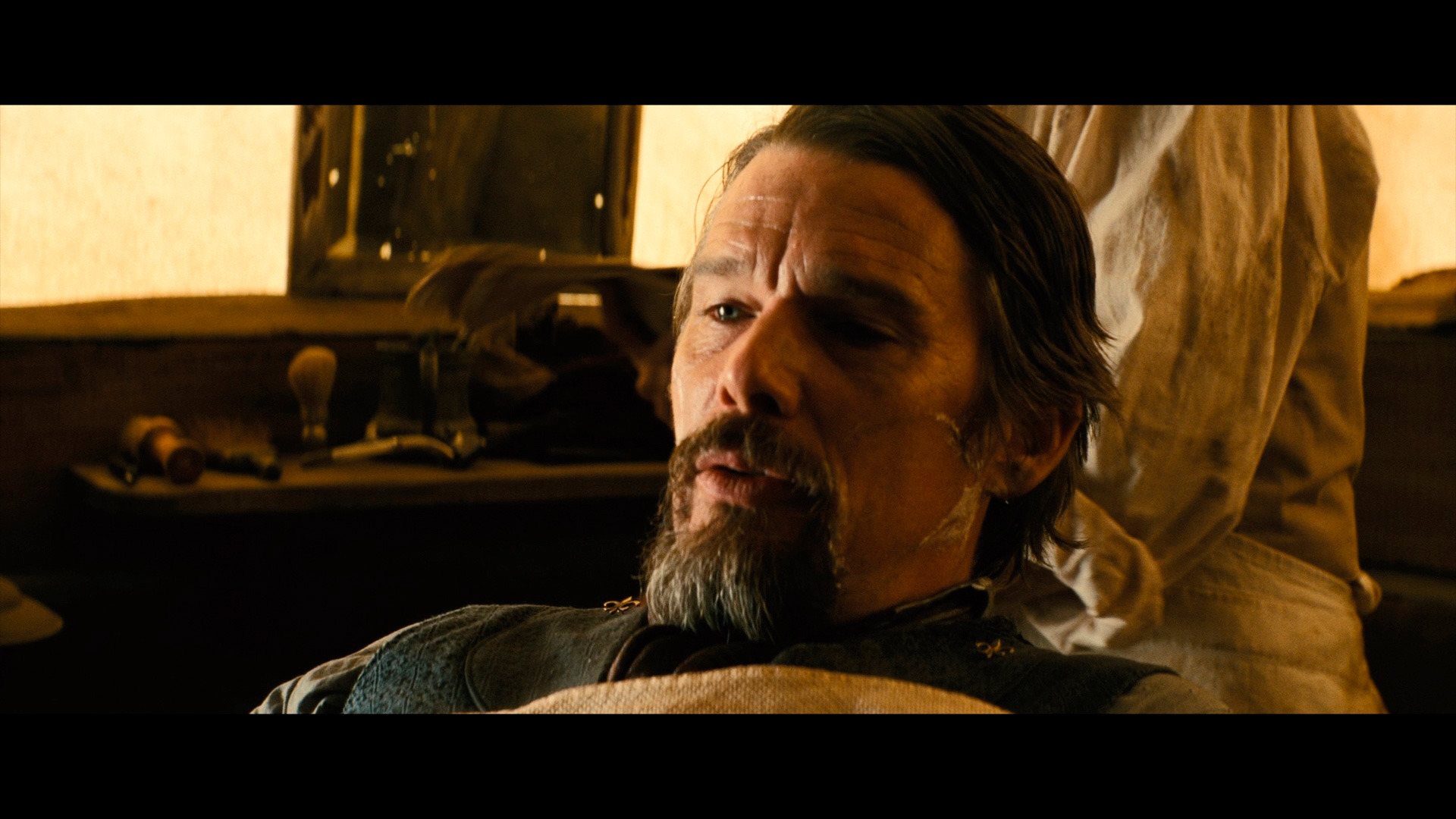 У Итана Хоука герой несколько неожиданный: бывший великий снайпер, а ныне - укурок и слегка психопат, который, однако, не растерял еще определенного лоска. Хорошая роль, прикольный персонаж - в общем, зачет.