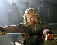 Да и сражения, по которым изрядно прохаживались зрители, на мой взгляд, тоже сделаны вовсе не ужасно. Ну да, недостаток постановки боев на мечах оператор компенсирует утомляющим мельтешением камеры, а помощники режиссера с бидонами кетчупа слегка заигрываются и выплескивают под один удар литров десять народной кровушки, но это и в голливудских фильмах встречается нередко. А в общем и целом сцены боев смотрятся вполне неплохо, и отстоем их я бы никак не назвал.