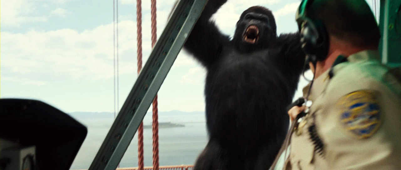 Движения же обезьян... выполнены очень натурально, но с первого же кадра понятно, что это анимация ибо все эти движения слишком разумны и человечны. С другой стороны, Серкис в роли Цезаря в этом фильме единственный кто вообще хоть как-то сыграл, остальные актеры присутствовали больше для мебели.