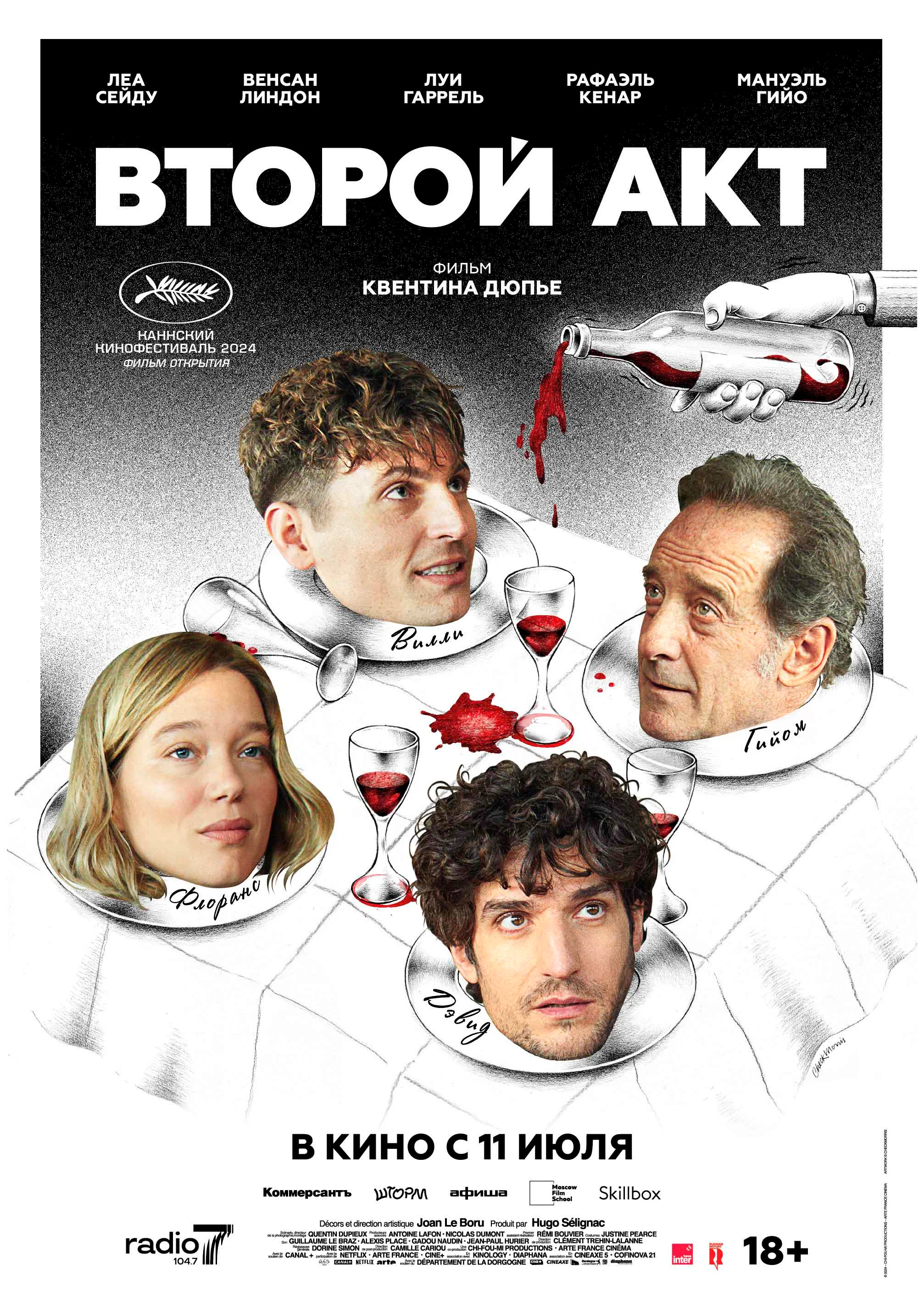 В итоге все четверо встречаются в стоящем посреди чистого поля ресторанчике под названием "Второй акт", в котором они продолжают разыгрывать любовную драму для фильма. Все остальные посетители ресторана - массовка. Владелец ресторана Стефан (Мануэль Гийо) - страшно нервничает по поводу того, что ему предстоит сыграть в фильме, и он все никак не может разлить заказанное Давидом вино по бокалам.